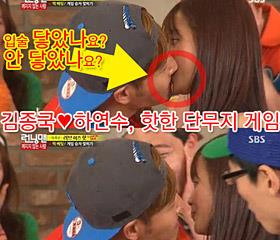 夏沇秀和金钟国通过嘴对嘴吃萝卜咸菜营造出令人眩晕的氛围。 在1日播出的SBS综艺节目《Running Man》中,