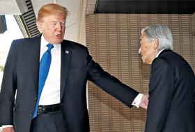 据每日新闻报道,6日上午,美国总统特朗普及其夫人梅拉尼亚访问了东京皇居,并与明仁日王夫妇进行了20分钟的谈话。日本媒体透