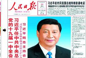 26日,中国共产党机关报《人民日报》头版刊登了几乎相当于真人大小的习近平主席肖像照片,宣告习近平执政2期拉开帷幕。在其下
