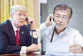据青瓦台发言人朴洙贤透露,韩国总统文在寅17日和美国总统特朗普通电话时,一致认为“为了让朝鲜政权明白越是进行挑衅,就越是