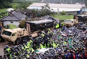 7日,萨德(THAAD,末段高空区域防御系统)四辆发射车进入星洲基地。 当天在剩余四辆萨德发射车追加部署前,10多