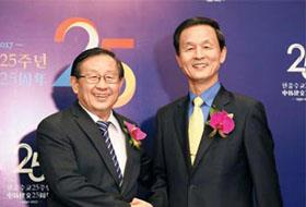 当地时间24日下午7点,韩中建交25周年的韩方纪念活动在北京中国大饭店举行。前一天单独举行了建交25周年活动的中方,当天