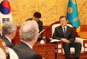 21日,韩国总统文在寅会见了由美国参议院外交委员会东亚太所属民主党干事爱德华·马奇率领的美国参众两院议员时表示:“应该同