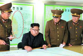 被推测为总管运营朝鲜导弹战斗力的战略军司令部,将韩国全域一分为四来划定导弹打击圈的地图照片被公开。据分析,这是朝鲜军方以