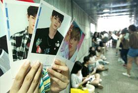 “谁有姜丹尼尔的小卡,请跟我交换!”10日下午,在连接教保文库的首尔地铁5号线光化门站地下通道,韩国偶像男团Wanna
