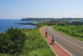 “环状自行车道”是幻想之岛济州岛的特产。这条能够欣赏到一望无垠的海景,环岛一周的自行车道开通于2015年11月。由行政自