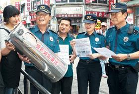 四五位居民们用扫帚打扫着小巷,放在一旁的垃圾袋整齐地摆放在一起。乘坐巡逻车路过的警察看到此景,下车帮他们一起打扫。这是1