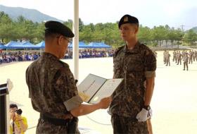 22日,周元当天在江原道铁原3师团新兵教育队结束了为期六周的基础军事训练后,参加了新兵教育结业仪式。 上月16日入