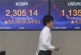 5月10日文在寅政府上台首日,韩国KOSPI指数如坐过山车,浮动幅度超过了50个百分点。由于买入与抛售交易量骤增,时隔5