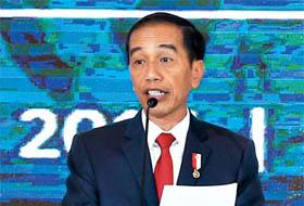 14日,在印尼雅加达香格里拉酒店的大宴会厅,印尼投资调整厅厅长托马斯·伦邦介绍印尼总统佐科维多多(以下称:佐科维)时,称