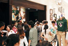 上月21日下午,在首尔中区乐天Hi Mart首尔站店,聚集在贴着TCL、海尔、美的品牌的中国产冰箱、电视机、洗衣机前的人