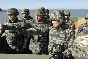韩国海军陆战队司令李尚勋(音)15日视察位于西海最前线的延坪岛表示:“如果敌方挑衅,就让(朝鲜炮阵地所在的)葛岛和长在岛