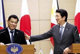 日本首相安倍晋三26日与访日的菲律宾总统杜特尔特举行了首脑会谈。安倍称:“日本和菲律宾就南海问题,一致认为‘法律的支配’