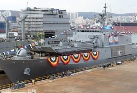 韩国海军的新型登陆舰3号舰——“日出峰舰”的下水仪式25日上午在蔚山举行。 4900吨级的“日出峰舰”的主要任务是