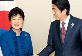 当地时间7日,韩国总统朴槿惠在老挝万象的国立会展中心和日本首相安倍晋三举行首脑会谈时表示:“随着去年底就慰安妇达成一致后