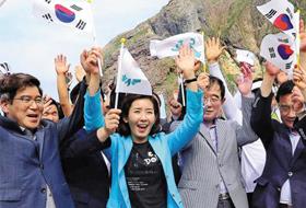 新国家党议员罗卿瑗为团长的“国会独岛访问团”所属朝野议员10人,15日访问独岛后,日本政府进行了抗议。 [imag