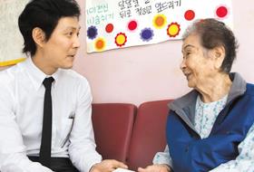4日下午,在首尔驿村洞的一家医院,电影《仁川登陆作战》的主演李政宰一手拿着花篮,一手拿着录像带出现在这里。在电影中,一位