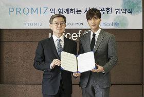联合国儿童基金会韩国委员会22日透露称,在世界水日(3月22日)到来之际,与演员李敏镐的捐赠平台“PROMIZ”签署了为