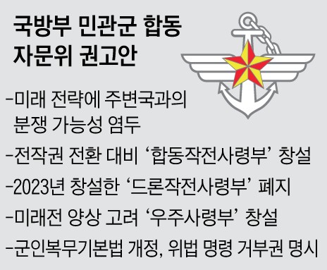 民官军咨询委员会建议将联参下属的战略司令部改为总统、国防部长官的直属部队,重组为拥有“玄武5”等战略资产的部队,还表示考虑到未来战争的形态,有必要设立宇宙司令部。不过,由于韩国军队几乎没有与太空相关的军事资产,因此也有人说即使设立宇宙司令部,在短期内它可能只会成为“军队卫星管理司令部”。