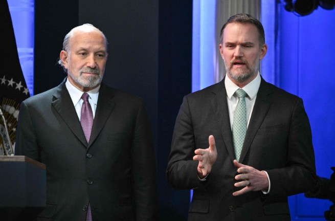 - ▲ 2月20日,美国贸易代表办公室(USTR)代表杰米森·葛里尔与商务部长霍华德·卢特尼克正在白宫接受提问。/AFP,韩联社