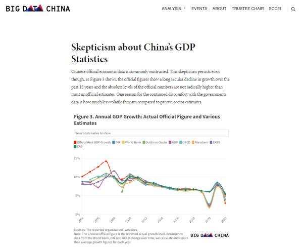 - ▲ 美国战略与国际研究中心(CSIS)高级顾问斯科特·肯尼迪在CSIS和斯坦福中国经济制度中心(SCCEI)的共同项目"大数据中国"上登载的中国统计相关发表资料。 斯科特·肯尼迪称:"甚至有人说,中国统计的可信度不如俄罗斯和巴基斯坦。" /大数据中国