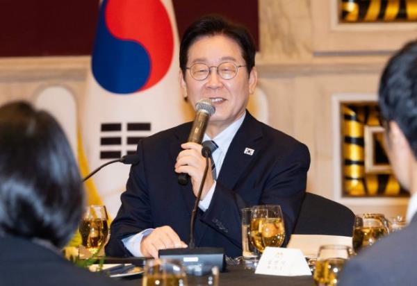 - ▲ 7日,在上海某酒店,正在对中国进行国事访问的韩国总统李在明出席巡访记者团午餐恳谈会并回答提问。/纽西斯