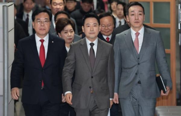 - ▲ 29日,国民之力代表张东赫、院内代表宋彦锡等领导层正出席在首尔汝矣岛国会召开的最高委员会会议。/南江浩
