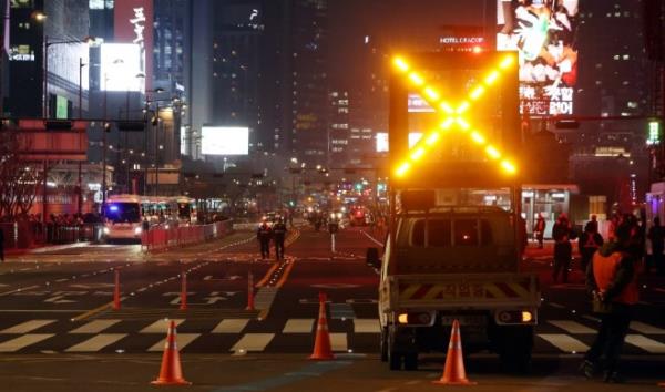 - ▲ 距离防弹少年团(BTS)时隔3年9个月以完整体回归的光化门演唱会仅剩一天,20日下午,首尔光化门广场一带实施了交通管制。警方及首尔市等部门的消息称,从当天下午9点开始,在安装了演出舞台的世宗大路等地开始实行绕行。管制路段从舞台所在的光化门广场北端到市厅,全长约1.2公里,通行限制将持续到演出第二天22日的上午6点。/News1
