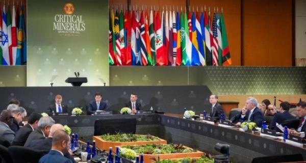 4日(当地时间),在美国华盛顿举行的核心矿物部长级会议上,包括七国集团(G7)在内的、在开采、冶炼、中间品与最终品制造等全供应链上有所合作的56个国家到场出席。