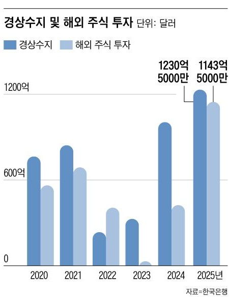 代表韩国人海外股票和债券投资额的“证券投资资产”账户,去年12月增加了143亿7000万美元。其中,股票增加了118亿3000万美元,债券(负债性证券)增加了25亿3000万美元。以去年全年为准,股票和债券投资分别增加了1143亿5000万美元和259亿3000万美元,整体证券投资增加了1402亿8000万美元。去年韩国人股票投资的增加额约为前一年为421亿6000万美元的三倍。