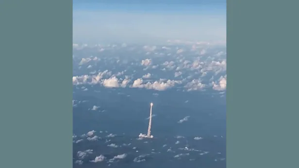 - ▲ 一位乘客通过飞机舷窗拍到的阿尔忒弥斯2号升空画面。/X