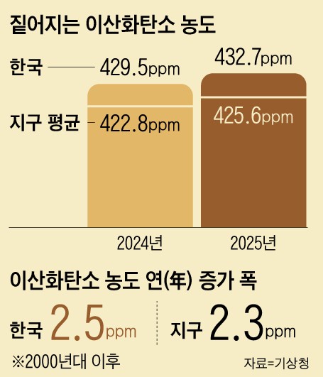 去年韩国温室气体浓度创下历史新高。29日,国立气象科学研究院发布的《2025地球大气监测报告》显示,代表性的“全球变暖主犯”——温室气体二氧化碳的浓度去年一年达到432.7ppm,比此前的最高记录(2024年429.5ppm)增加了3.2ppm。不仅是二氧化碳,甲烷、氧化亚氮、六氟化硫等四种温室气体的浓度也都创下了历史新高。