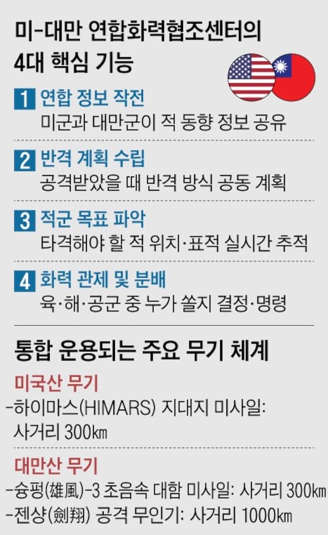 据悉,新设的联合火力协调中心正是为了弥补这一弱点,将分散的各军种打击资产整合到“综合指挥系统”麾下,发挥指挥塔的角色。另有分析称,该中心不仅整合台军内部,还负责实时接收美国目标情报,接入台湾导弹系统,起到促进两军合作的核心作用。《联合报》报道称:“台湾与美国共同开展情报协调工作意味着,必要时,美军将通过联合工作向台方提供各种远程导弹的目标情报”,“这是美国对台出售大量导弹后,实际构建遏制战力的最具诚意之举。”