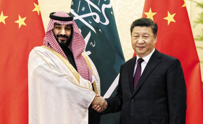 - ▲ 22日,在中国北京人民大会堂,沙特的实权者穆罕默德·本·萨勒曼王储(左)在举行会谈前,与中国国家主席习近平握手。/AP,韩联社