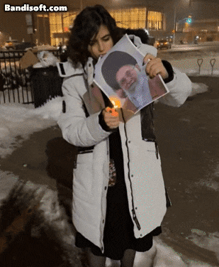 - ▲ 焚烧伊朗最高领导人阿亚图拉·阿里·哈梅内伊照片后,用来点烟的女性。/X