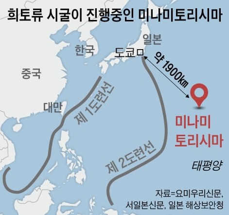 2013年,东京大学的学者们在该海域发现了含有高浓度稀土类的淤泥。据估算,这里至少存在1600万吨的稀土类。按储量计算,仅次于中国和巴西,排名世界第三,这一估算值公布后,该海域被视为日本经济安全的最前线。