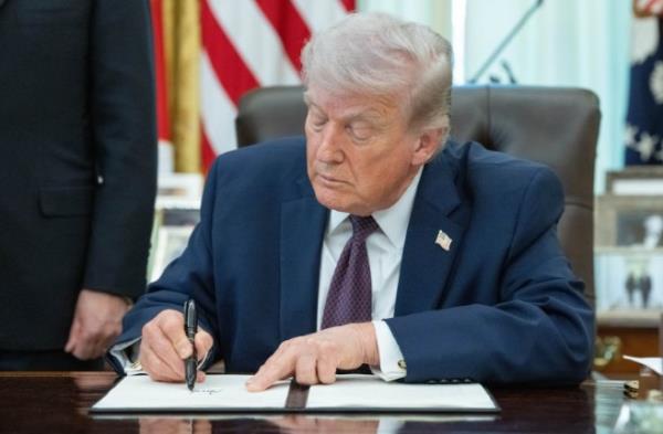 - ▲ 1日,在白宫的活动中,美国总统唐纳德·特朗普正在签署行政令。/EPA,韩联社