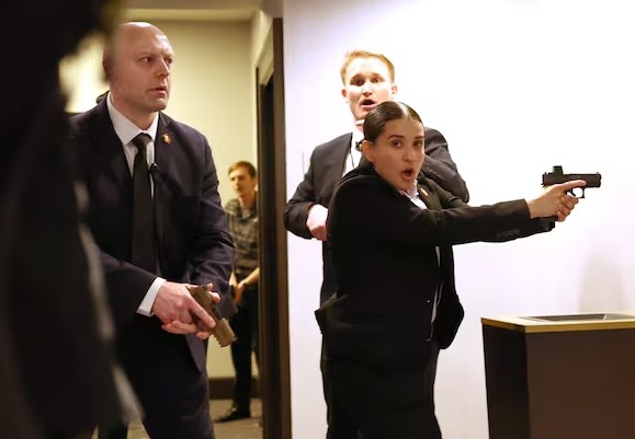 - ▲ 25日,在华盛顿举行的白宫记者晚宴现场,特勤人员正在执行任务。/AFP,韩联社