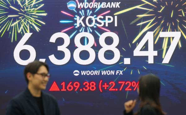 - ▲ 21日下午,在首尔中区友利银行交易室,KOSPI指数显示刷新历史记录。/张连胜记者