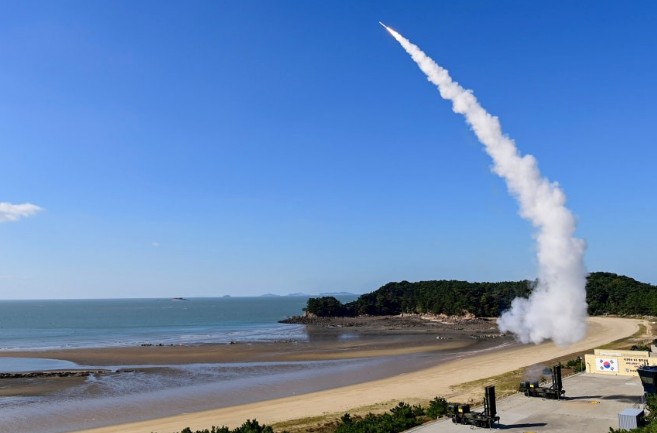 - ▲ 2024年11月,在西海岸进行的导弹拦截实弹射击训练中,军方正朝着假想目标发射天弓-Ⅱ地对空导弹。/联合参谋本部