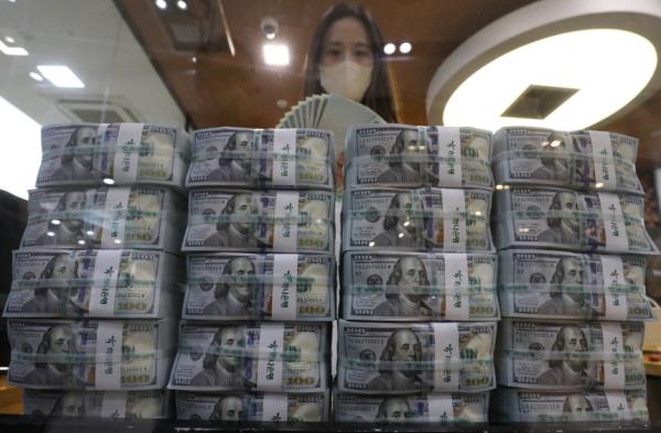 - ▲ 在首尔中区的韩亚银行伪变造应对中心,工作人员正在整理美元。/News1