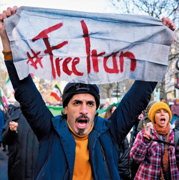 - ▲ 美联社柏林电……支持“伊朗自由”的示威集会 - 10 日,在德国柏林举行的支持伊朗示威的集会上,一名男性举着写有“伊朗自由”的横幅。欧盟(EU)主要国家也纷纷谴责武力镇压。