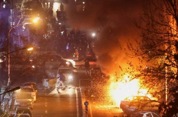 - ▲ 本月8日,在伊朗首都德黑兰,反政府示威队和镇压示威的革命卫队等安全部队发生冲突,导致车辆起火。去年年底,因抗议物价暴涨而开始的示威正在朝批判伊斯兰神政体制的方向发展,有人推测死亡人数将达到6000人。/路透社