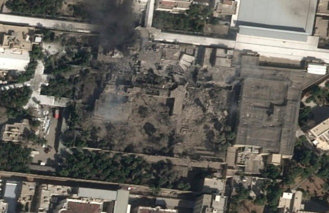 - ▲ 1日,以色列国防军公开的轰炸伊朗政府大楼的画面。/以色列国防军X